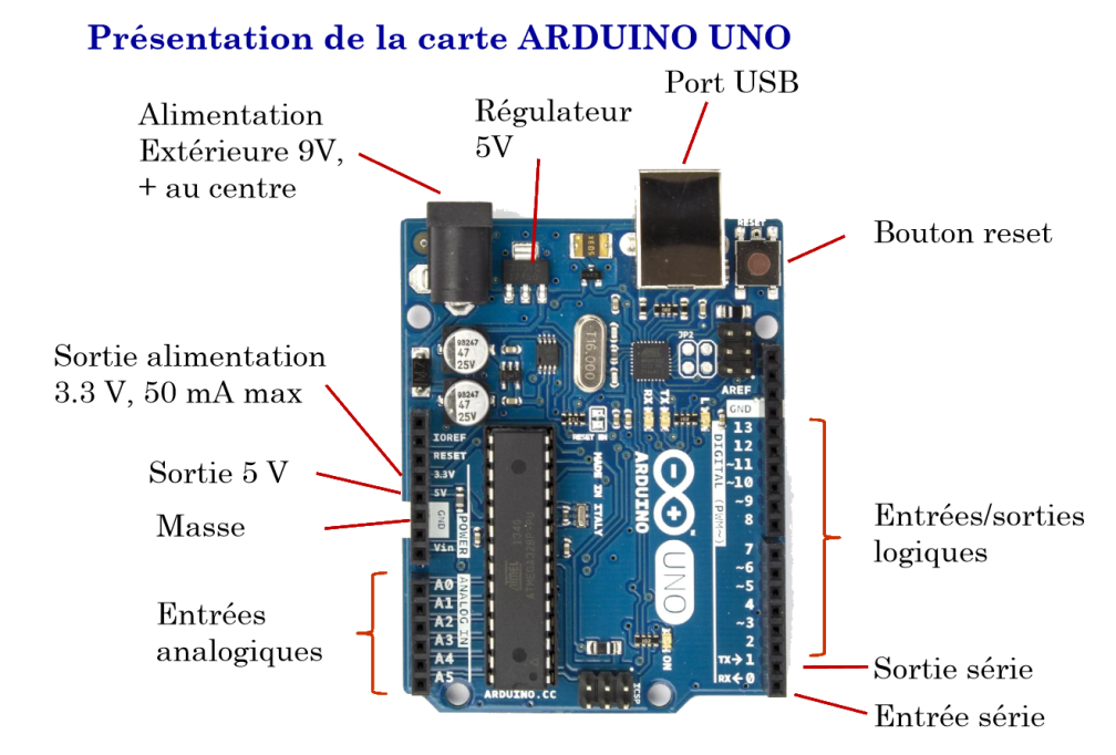 Elle comporte des Entrées (et sorties) Analogiques où l'on vient brancher des capteurs Analogiques par exemple.